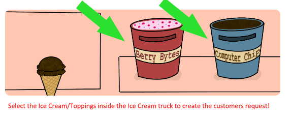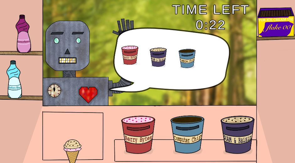 So we thought of a Cooking Mama/Mobile Cooking game for the overall gameplay. As these games are normally very intuitive and require little instruction to hop in and play. With the gameplay direction decided we settled with the theme of running an ice cream truck for robots. This is where the collaboration with AI takes place as we need to collaborate with them to get their orders right!